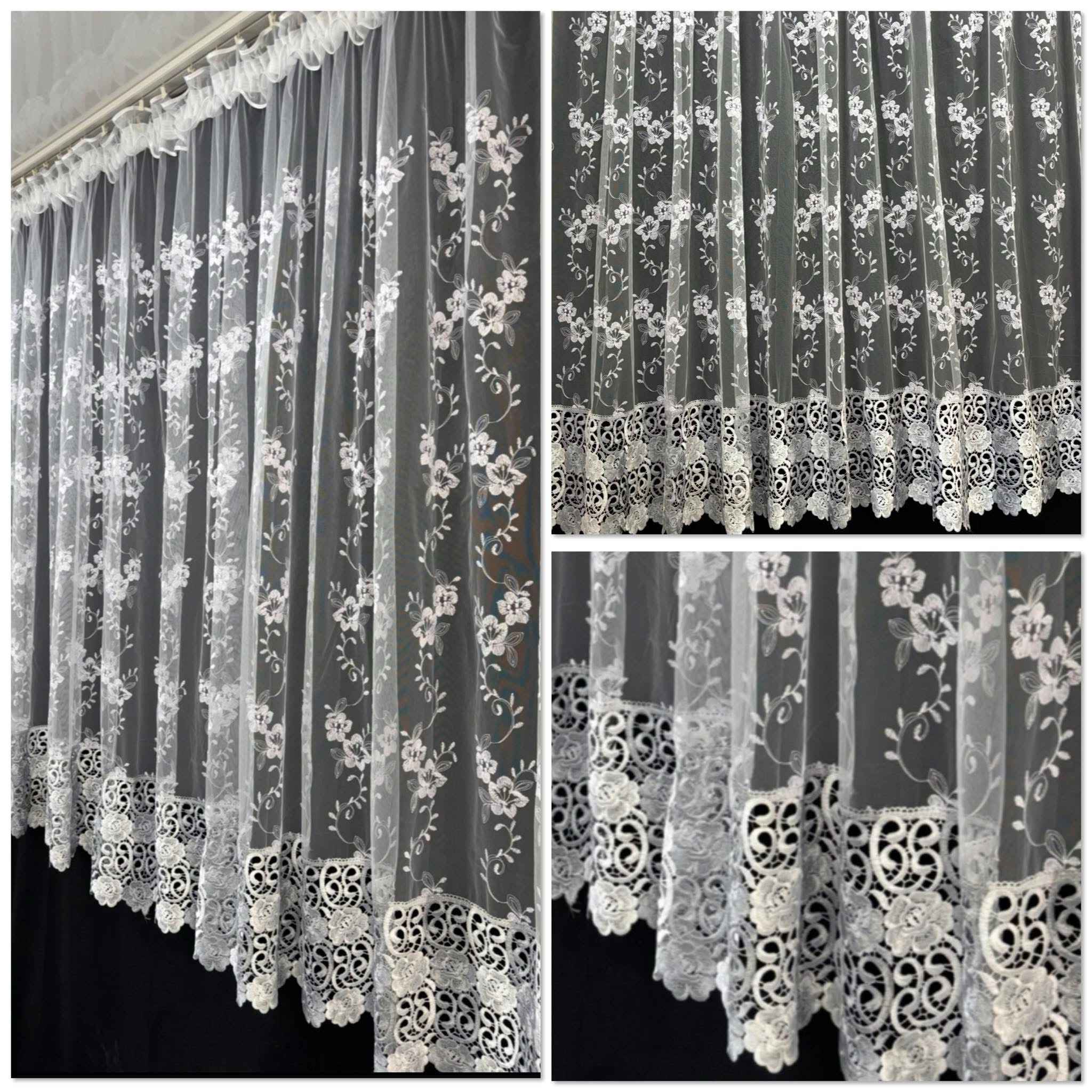Kaunid valged kardinad, mis sobivad ideaalselt elutuppa, magamistuppa või söögituppa. Kardinad on elegantse pitsiga, mis lisab ruumile peenet ning õhulist stiili. Sobivad nii minimalistlikku kui klassikalisse sisekujundusse.