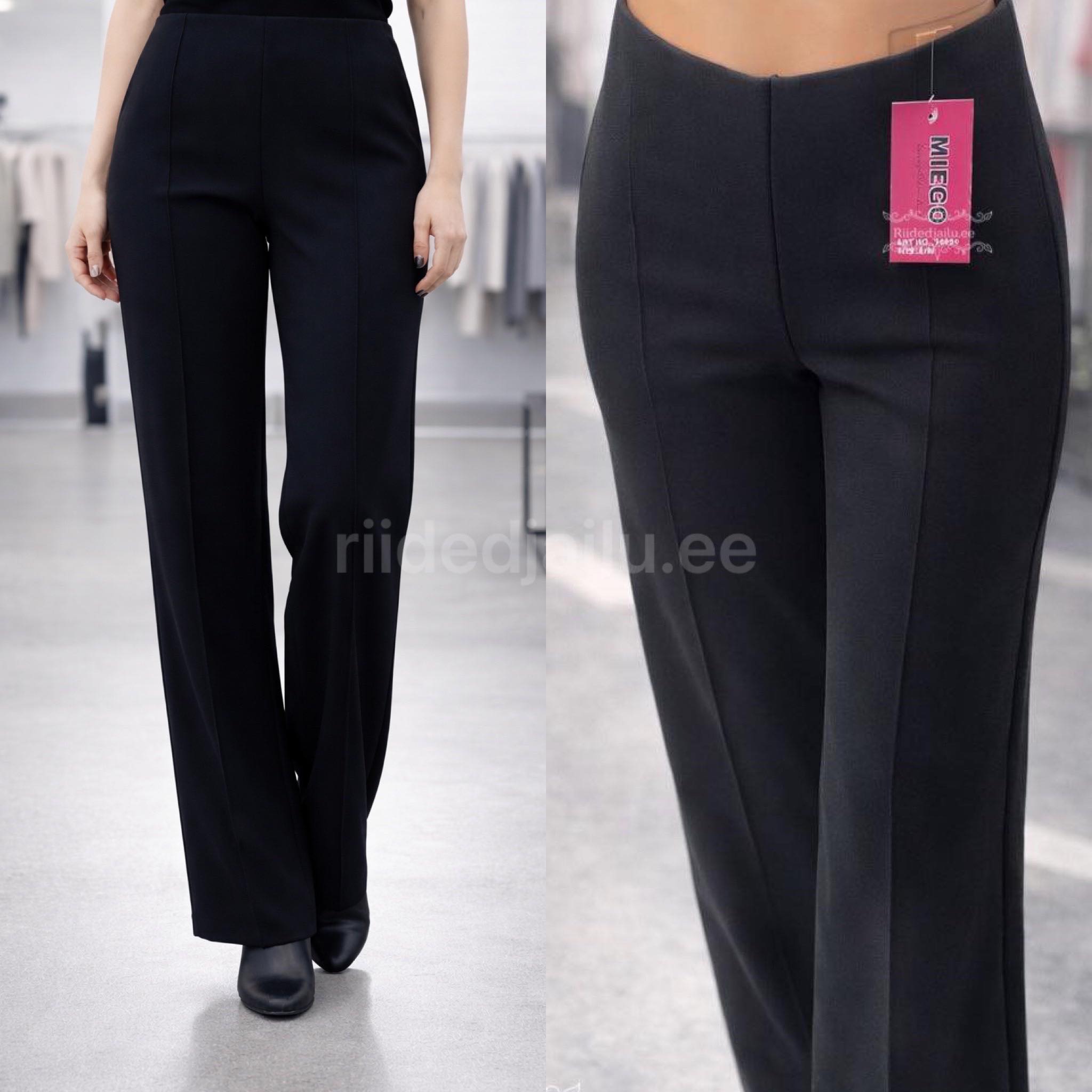 Need klassikalised mustad püksid on loodud naistele, kes hindavad mugavust ja stiili üheskoos. Elastne ja pehme kangas kohandub kehaga, sirge lõige koos kerge laienemisega allosas loob kauni ja pikendatud silueti. Püksid taskuteta.
