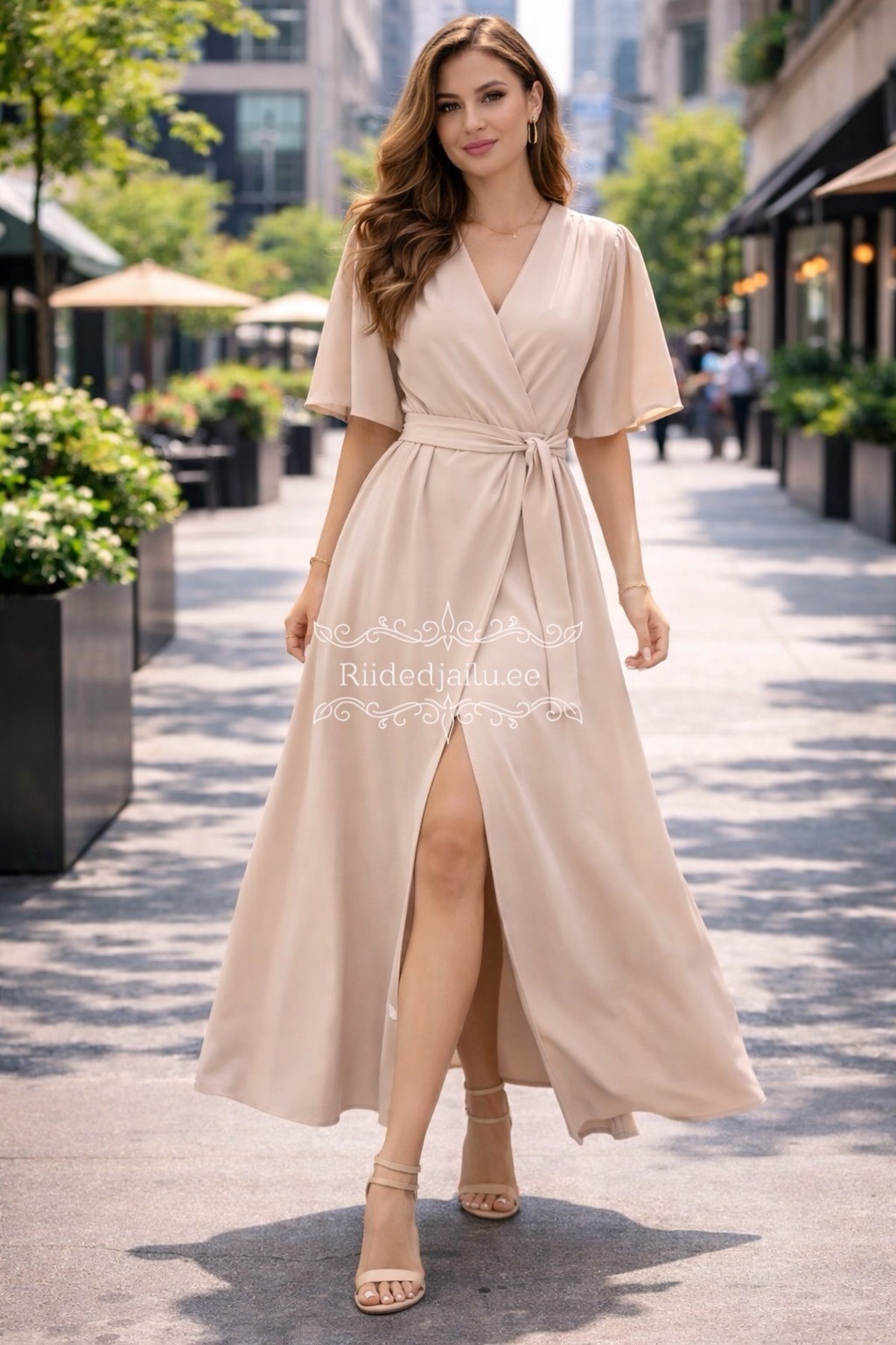 Kerge ja langev kangas, naiselik V-kaelus, taljet rõhutav vöö ning universaalne midi-pikkus – ideaalne kevadeks, suveks, pidulikeks sündmusteks ja igapäevaseks elegantsiks.