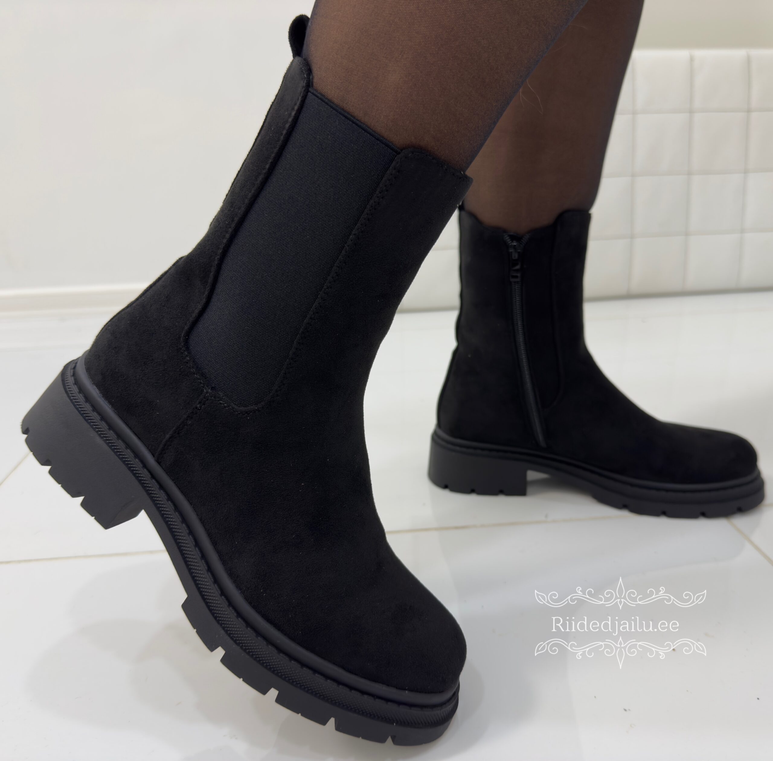 Lühikesed sametised mustad naiste saapad