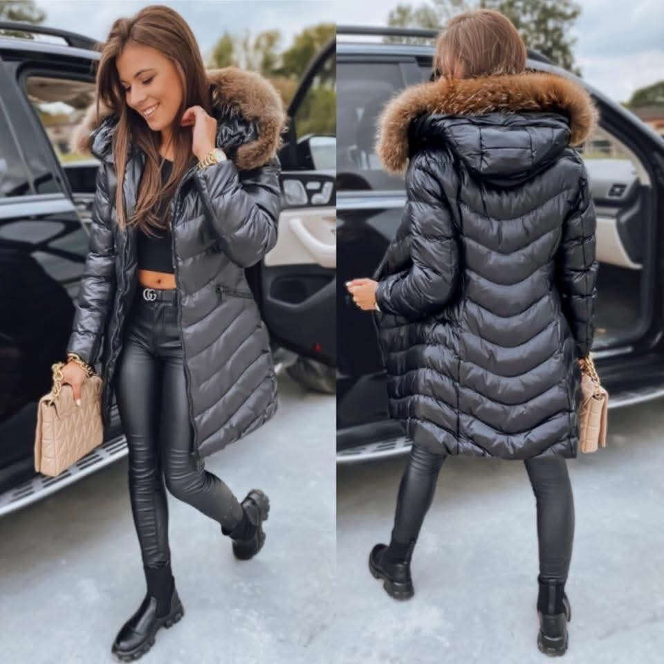 Naiste Kaunis Must Mantel Naturaalse Karvaga