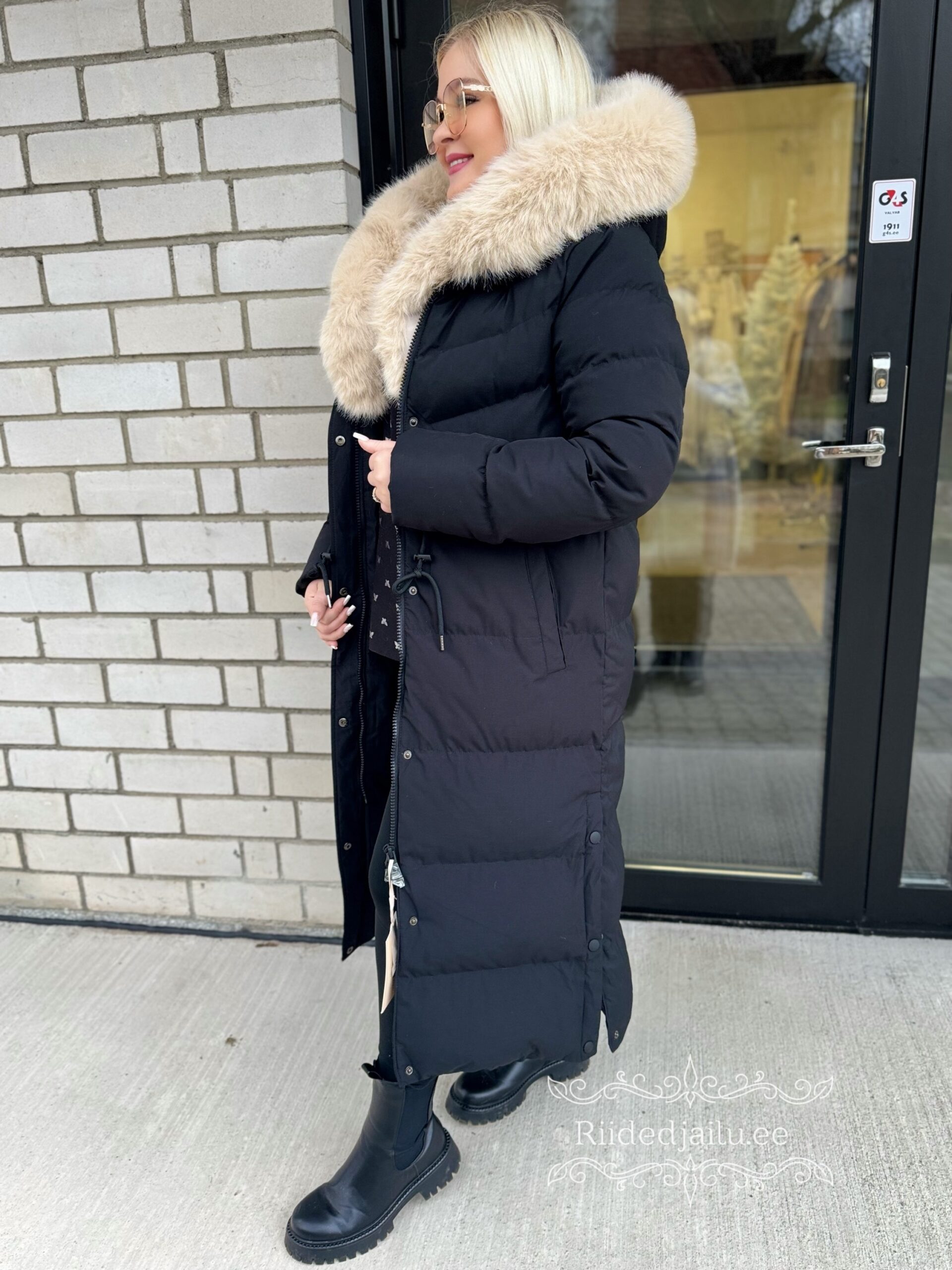 Naiste Kaunis Must-Beež Mantel Karvaga