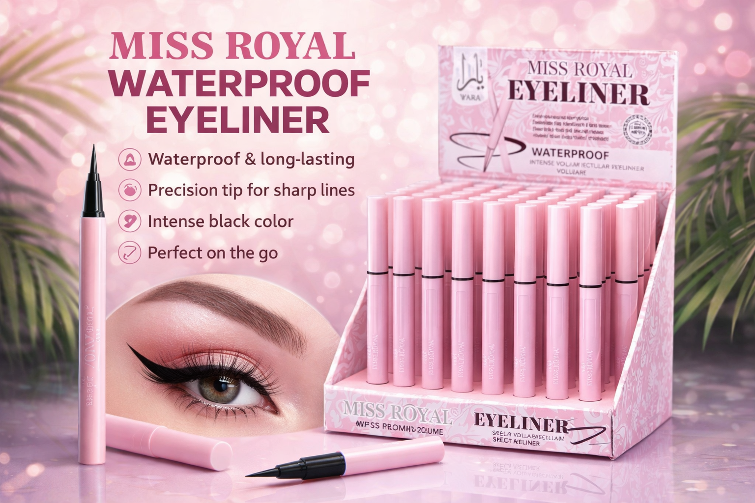 Miss Royal Eyeliner on kvaliteetne veekindel silmalainer, mis tagab intensiivse ja täpse joone kogu päevaks. Sobib ideaalselt nii igapäevaseks kasutamiseks kui ka pidulikuks meigiks.