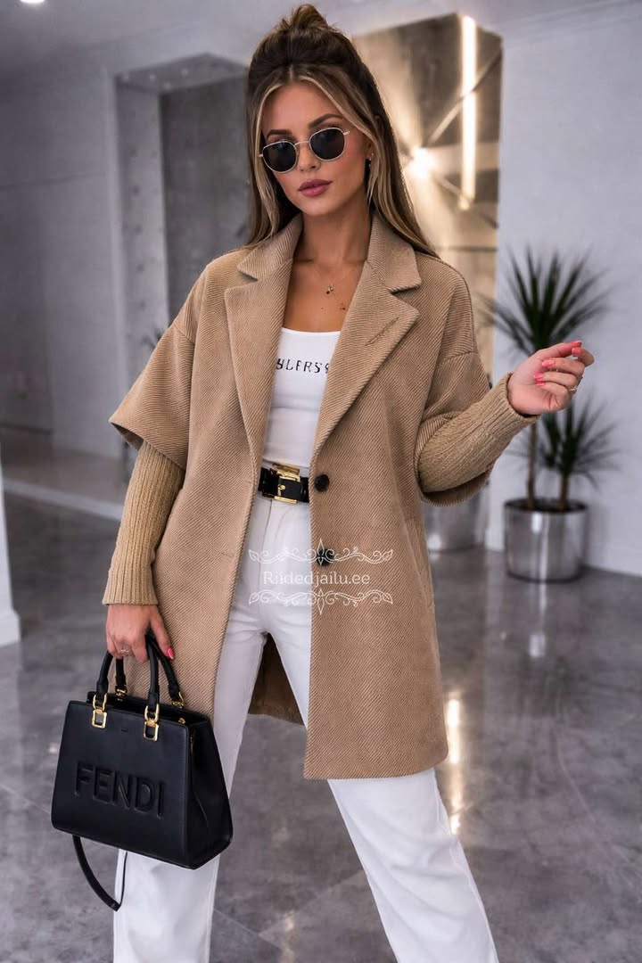 Voodriga ja taskutega Karamell mantel.