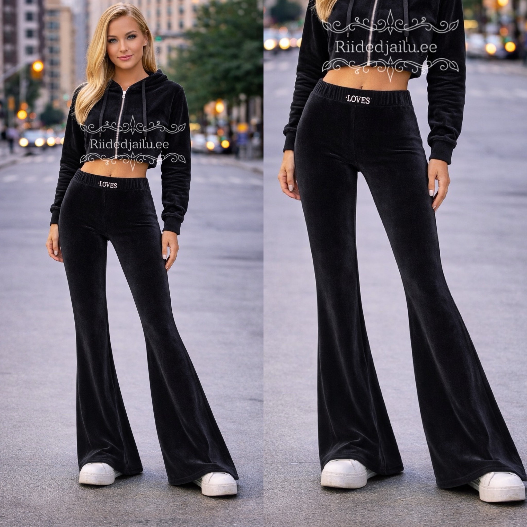 Veluurist naiste püksid. Pehmed laiad püksid elastse vöökohaga.