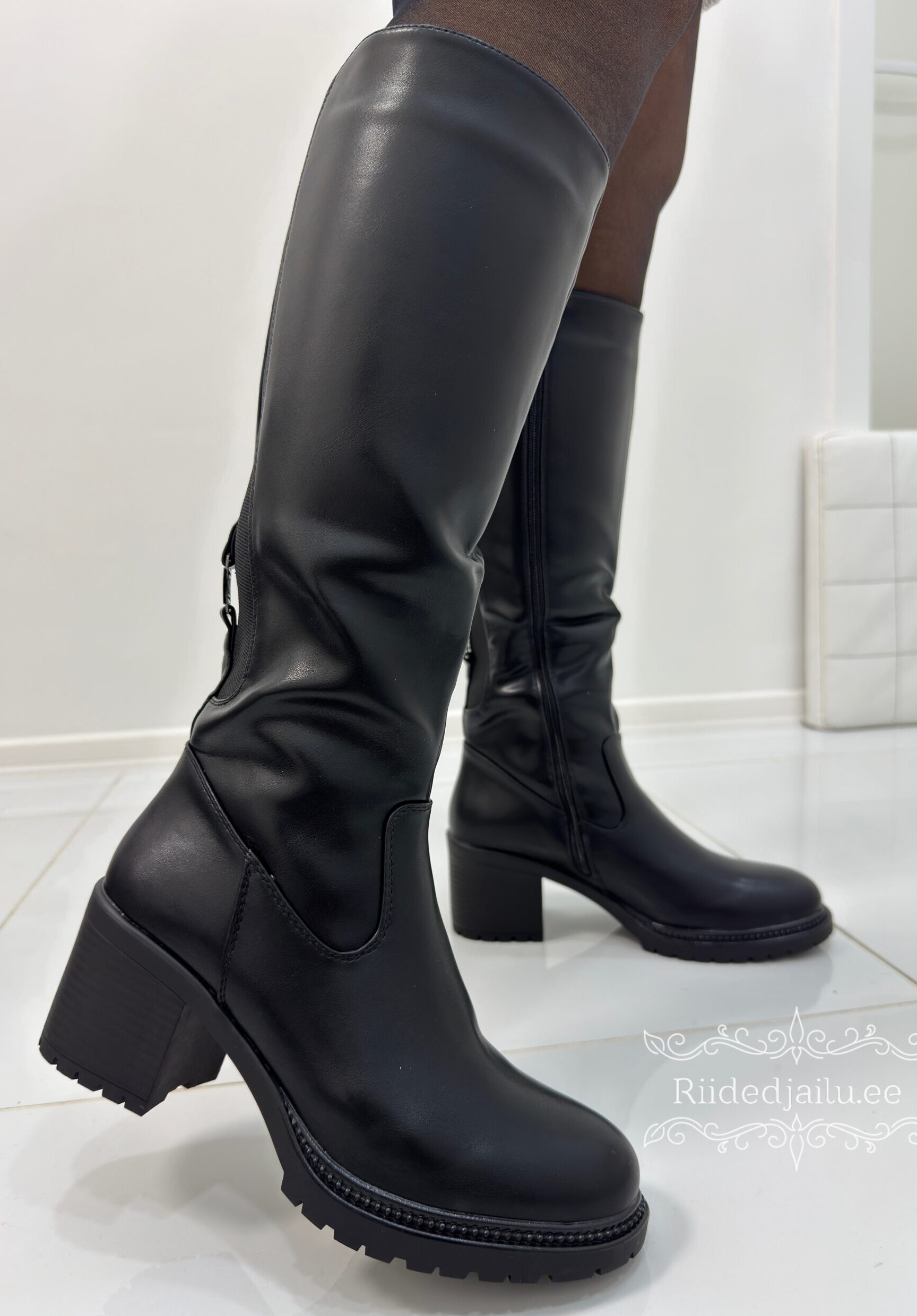 Mustad naiste pika säärega saapad Materjal: Nahaimitatsioon 36-23,537-2438-24,539-2540-25,541-26
