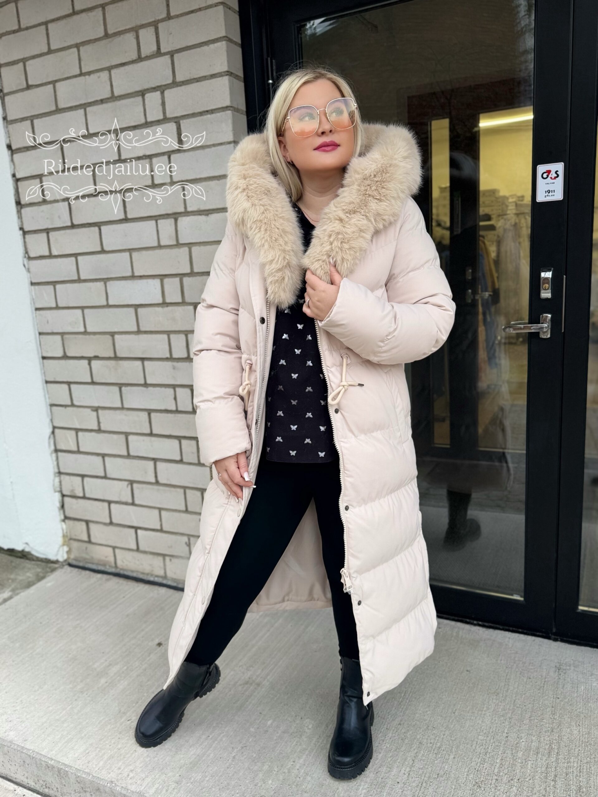 S- rinnaümbermõõt 90-95cm, Puusaümbermõõt 100-100cm, Üldpikkus-116cm, Varruka pikkus-65cm